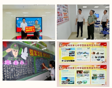 在国防教育宣传上,我校充分发挥校内环境、走廊文化的隐性育人功能,在教室、走廊以及行政楼六楼展馆开辟了“创国防特色,展学子风采”宣传园地,通过多元渠道宣传阵地,广泛宣传国防教育知识,营造了“心系国防情系国防”的良好教育氛围。此外,我校陈进火、刘永斌等优秀老师被聘任为泉州市国防教育讲师团讲师,进一步奠定了国防教育师资队伍的建设基础。