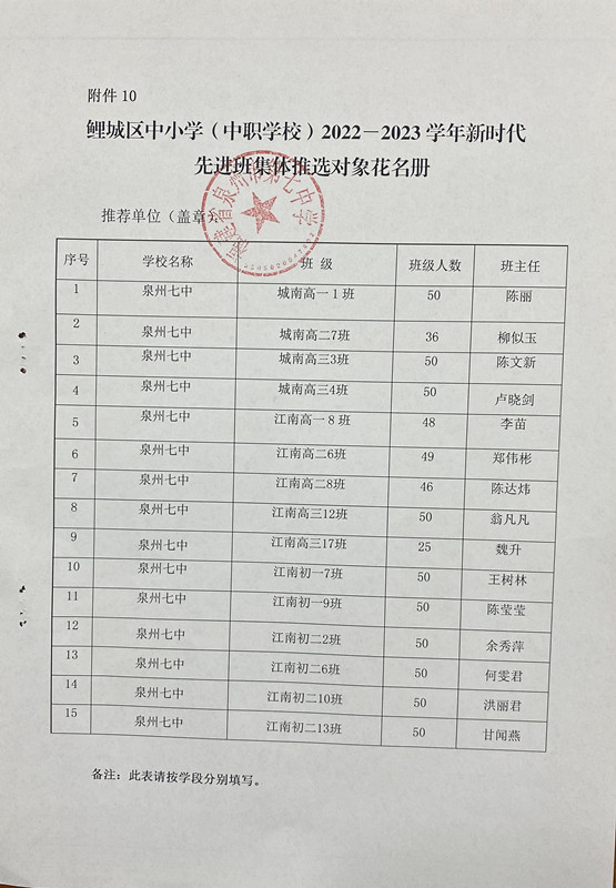 关于推荐泉州市中小学优秀班主任、德育工作者候选对象的公示