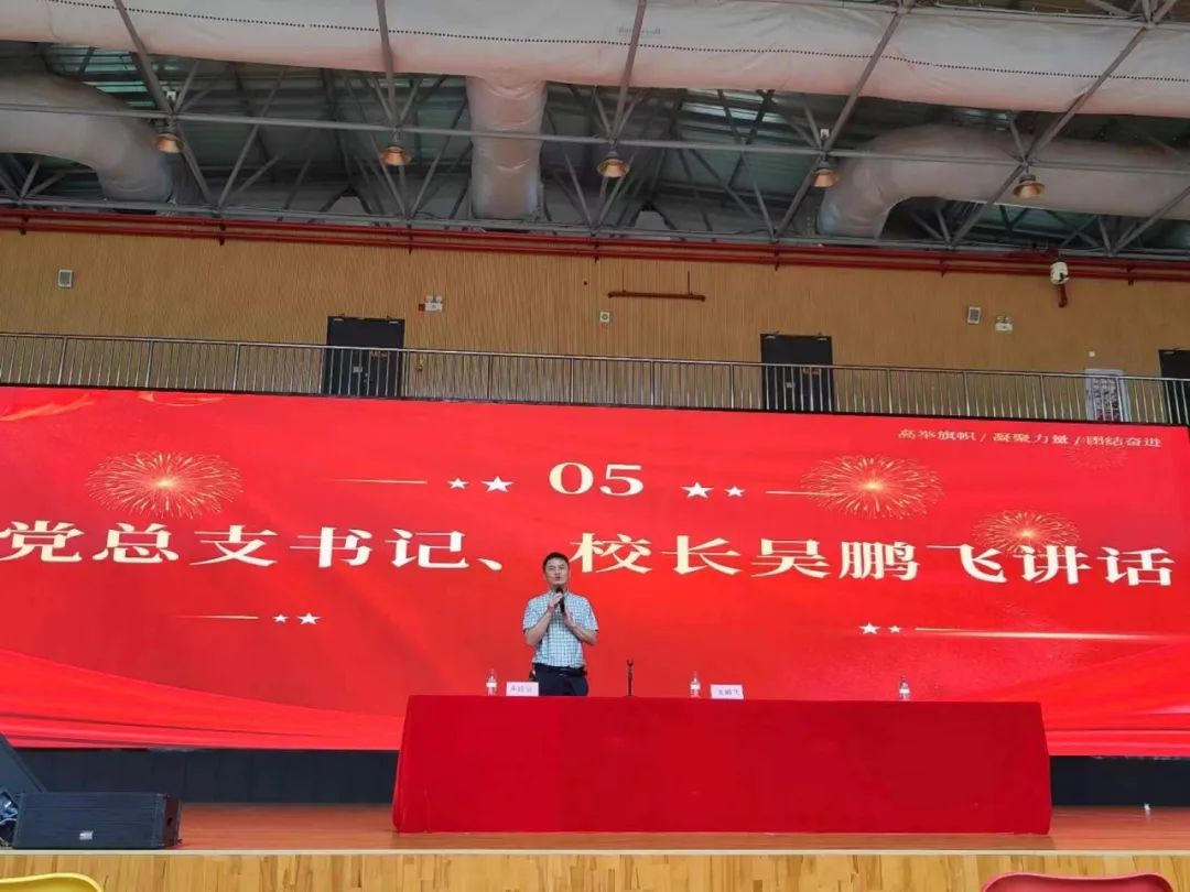 随后,我校党总支书记、校长吴鹏飞就“家校共育”发表了热情洋溢的讲话,感谢各位家长对学校工作的支持与信任。吴校长针对初一、初二的学情提出3点建议:第一,注重孩子德智体美劳全面发展,鼓励孩子积极参与校园五育活动;第二,引导孩子掌握基本知识与技能,打好学习基础;第三,加强与老师间的密切良好沟通,关注青春期心理,为孩子的健康成长保驾护航。