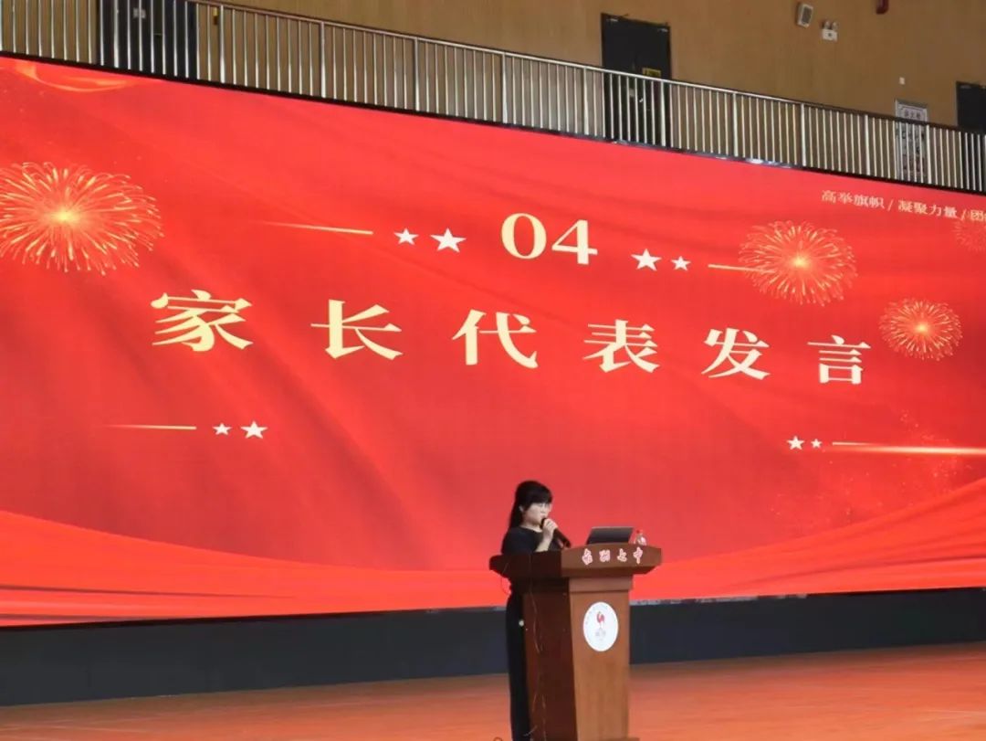 初二5班林皓轩家长作为家长代表发言。她肯定孩子入校来取得的的巨大进步,感谢老师们付出的心血和汗水。同时立足自身教育实践,分享孩子的成长经历和教育心得,从不同角度介绍自己的家庭教育方法,为在场的家长提供许多具有参考性、可操作性的建议,引发家长们的共鸣。她呼吁家长要配合学校工作,与学校同心同向同行,共战共进共赢。