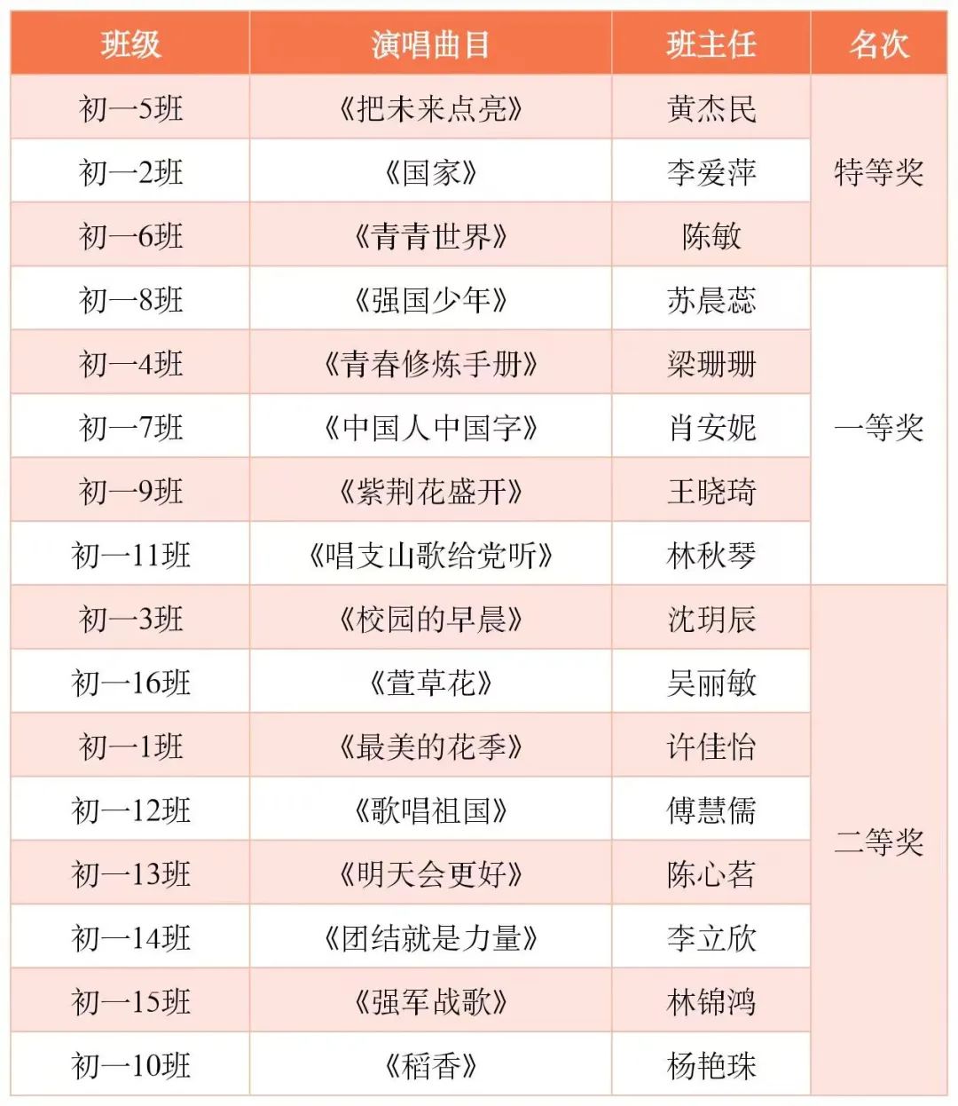 引吭高歌中,唱出的是少年担当、家国情怀;深情歌颂里,咏叹的是国泰民安、盛世中华。在激烈的角逐下,此次红歌比赛的结果最终揭晓: