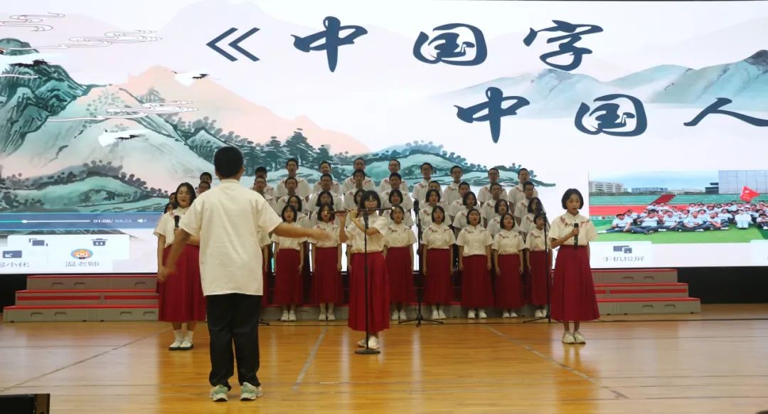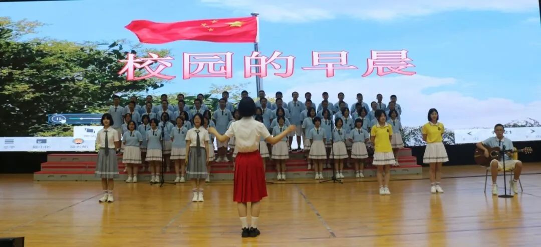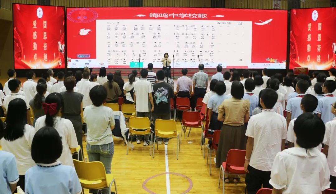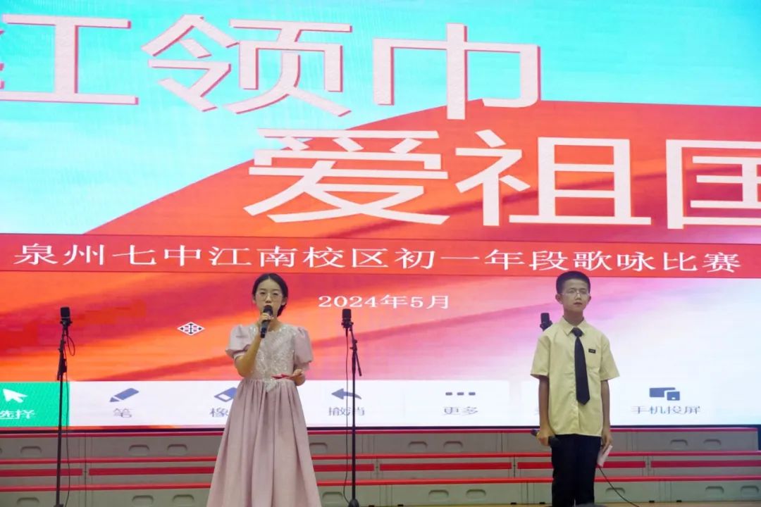 歌咏比赛活动中,初一年全体师生齐聚一堂,我校党总支书记、校长吴鹏飞等相关行政领导及初一年家委代表共同参与,活动由赖叶馨、陈子煜同学主持。体育馆内洋溢着青春的激情,饱含着对祖国的热爱,我校师生们一同欢度着这个特别的六一节。