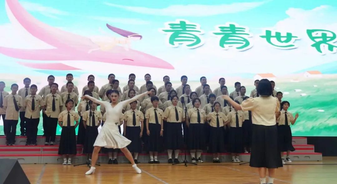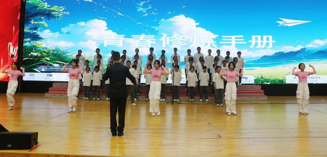 活动在全场齐唱校歌声中拉开序幕。全校师生起身齐唱校歌,动人的旋律萦绕于梁。接着,初一年段十六个班级轮流登台合唱,声声红歌,讴歌着奋进的时代。每一位学子穿着齐整,面露笑容,红心向党,放声歌唱,洪亮的旋律响遏行云,展现出七中人朝气蓬勃、积极向上的精神面貌。