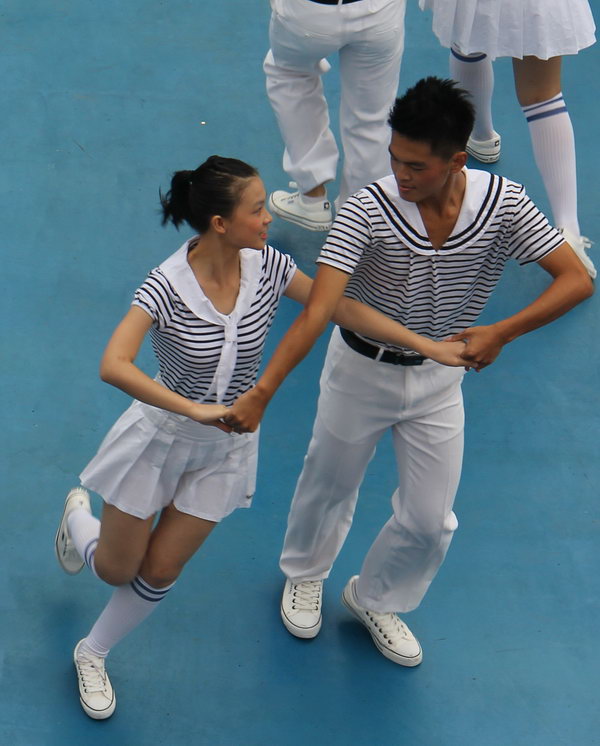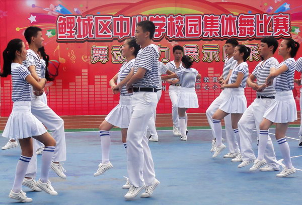 赛场上,我校舞蹈队表演了国家教育部开展阳光体育运动以来重点推广的集体舞曲目《青春旋律》。比赛中,我校同学们的舞蹈充满活力,热情奔放,舞姿优美,动作整齐划一,得到了评委和观众们的阵阵喝彩,最终我校代表队以总分第一的成绩夺得比赛高中组冠军。