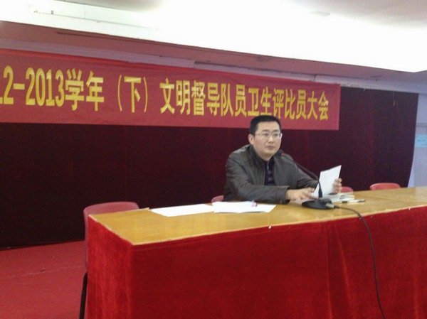 2月23日下午,政教处在行政楼九楼多功能会议厅召开“卫生督导员”和“文明督导员”培训动员会,全体值日督导老师和高一、高二年段的督导队员及劳动委员参加了会议。政教处副主任付老师主持会议。付老师就值日督导和卫生督导工作的开展做了详细的指导,并对同学们提出了新学期新的要求。政教处主任刘伟杰老师作了总结发言,鼓励督导队的老师和同学在督导工作中多想想办法,把工作做好,为营造良好的校园秩序和学习氛围多做贡献。(通讯员:苏超群)