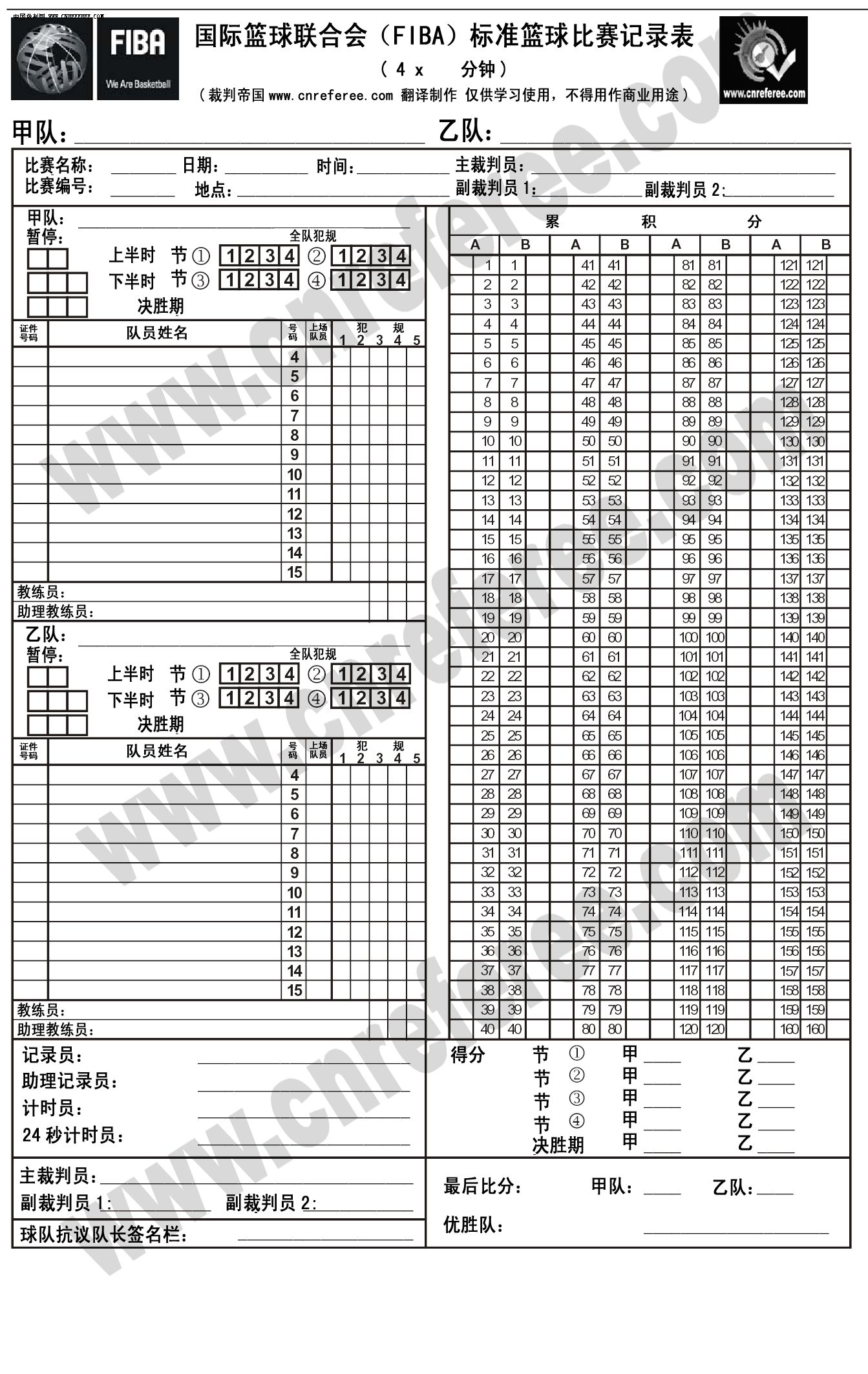 篮球比赛记录表